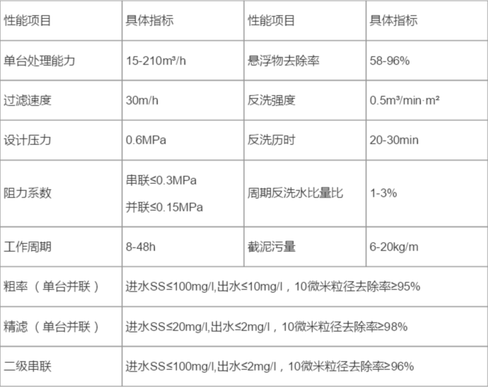 纖(xiān)維球過濾器濾料采用(yòng)的纖維球,具(jù)有抗腐蝕、高彈性、耐磨損以及(jí)空隙可變的特點。在工作過程中,由於過濾(lǜ)器工作(zuò)壓力、水流(liú)衝擊力(lì)和濾料自(zì)身重量因素,濾層的空隙率沿水流方向從上至下逐漸變小,形(xíng)成上部(bù)疏鬆、下部密實的理想濾層(céng)分布規律。此外,纖維球具有極大的比表麵積,同時,經測定其空隙率為96%左右(yòu),使其能夠充(chōng)分發揮濾料對汙物的(de)攔截(jié)能力,吸附並截留(liú)原水中的固體懸浮顆粒。纖維球由於其材質特性,具有不易沾(zhān)油的特性,因此反洗時較為容易,也使得反洗水用量(liàng)降低;還(hái)具有很高的化學穩定性,當原水中含有有機物使纖維球濾料受到汙染時,可以采用化學清洗的(de)方法(fǎ)使其再生(shēng),具有較強(qiáng)的實用性。